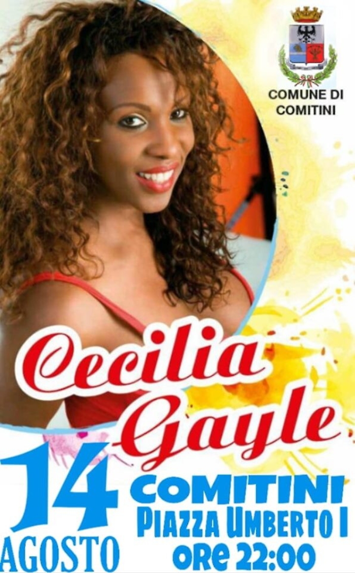 L'artista Cecilia Gayle sarà la protagonista della notte di Ferragosto a Comitini. La cantante proporrà, in piazza Umberto, le sue migliori canzoni fino alla mezzanotte allorché si terrà uno spettacolo pirotecnico.