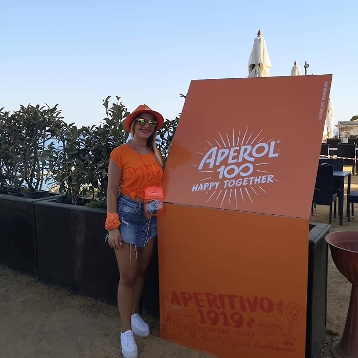 La Scala dei Turchi si è tinta di arancione per un giorno. Al Belvedere Kainon è approdata la festa dell'Aperol, la bevanda alcolica che ha raggiunto il traguardo dei cento anni. Le hostess hanno distribuito gadget a tutti gli intervenuti. Inoltre sono stati anche distribuiti dei props con i quali ogni singola persona ha potuto scattare delle foto molto particolari.