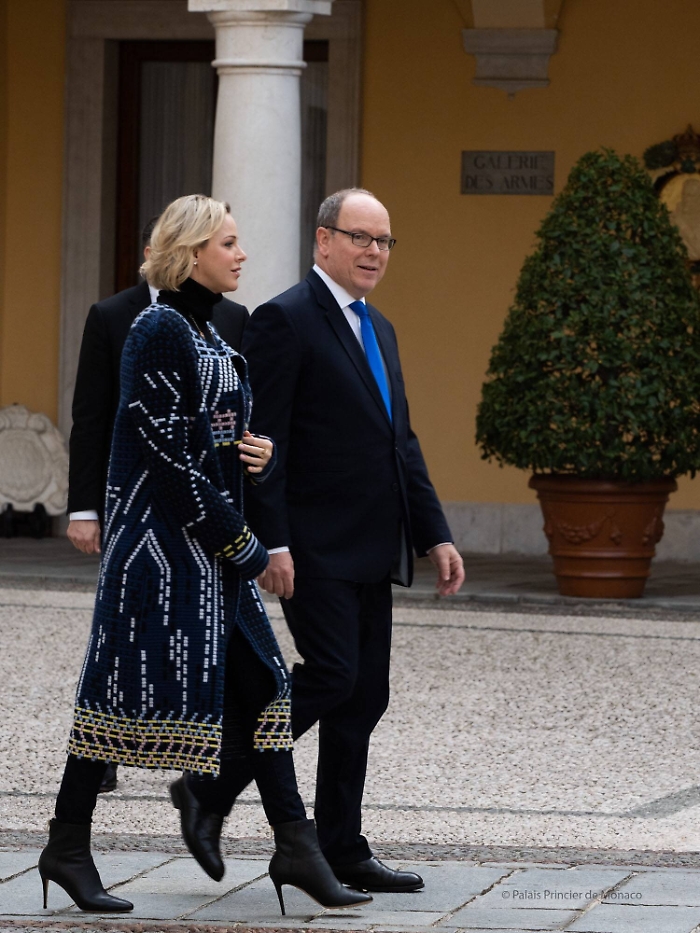 Principato di Monaco - E' sempre bella ed elegante ed ultimamente molto presente agli eventi pubblici di Palazzo Grimaldi. La principessa Charlene di Monaco non rinuncia mai ad essere chic anche quando si reca in visita al centro di trasfusione del sangue del centro ospedaliero principessa Grace (per l'occasione ha sfoggiato un completo, gonna sopra al ginocchio e giacchetta, Louis Vuitton) o quando, in versione più sportiva, ha assistito ad Abu Dhabi all'ultimo gran premio di Formula Uno della stagione (ha indossato una tuta grigio-azzurro con bordini bianchi). Super regale invece nella foto-cartolina ufficiale del Principato dove indossa un abito lungo verde-blu e in cui posa insieme al consorte, il principe Alberto, e ai due figli gemelli, Gabriella e Giacomo.