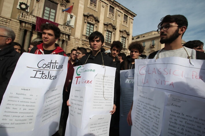 A Catania i licei classici "Cutelli" e "Spedalieri" hanno aperto le porte a quanti hanno voluto partecipare all'evento, e novità di quest'anno, i ragazzi del Cutelli hanno anche dato vita ad una "catena umana". Alle 11,30, studenti, insegnanti e associazioni hanno attraversato in corteo alcune vie della città per poi giungere all'ingresso del Giardino Bellini dove sono stati letti alcuni articoli della Costituzione e brani letterari. In piazza Duomo, la "catena umana" ha incontrato il sindaco Enzo Bianco e l'assessore alla Scuola Valentina Scialfa. «Il Cutelli - ha affermato Bianco - come i licei classici, rappresenta per i suoi studenti una straordinaria opportunità, perché consente di maturare una coscienza critica indispensabile oggi più che mai. Sono felice di essere cresciuto in un liceo classico, un liceo pubblico, con alcuni grandi docenti che hanno segnato profondamente la mia vita».