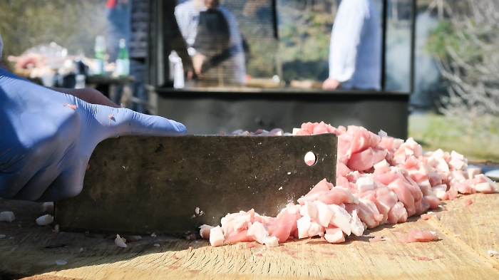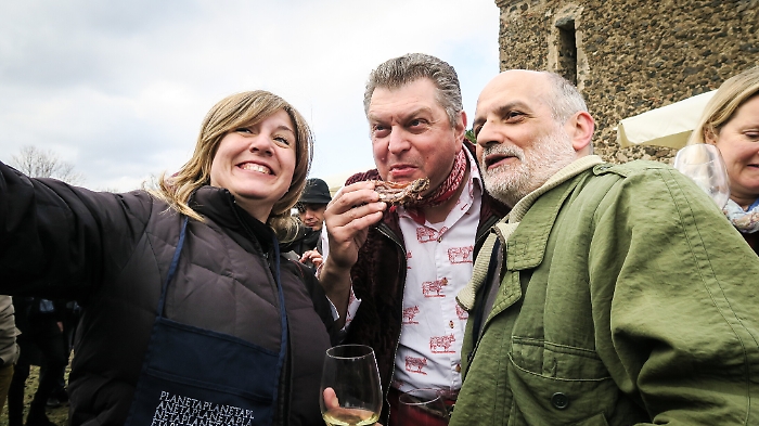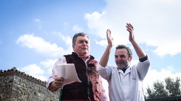 CASTIGLIONE DI SICILIA - Rulli di tamburi e trombe in stile giullarata medievale per una festa allegra e goduriosa che celebra la carne. Non fatevi ingannare dal nome, niente di erotico, “Carnalia” è un trionfo del gusto, una ordalia di carne bovina e di maiale, un’immersione nell’arte dei carnezzieri che ogni due anni mette insieme alcuni dei migliori macellai siciliani e ospiti di altre regioni all’ombra dell’Etna, nell’azienda vinicola dei Planeta a Sciaranuova, Passopisciaro. Una festa dal sapore antico, con grandi bracieri fumanti da visione dantesca per costate e salsicce e la quadara per le frittole, che ha come patron d’eccezione Dario Cecchini, il re della bistecca fiorentina. Un “arrusti e mangia”  a cinque stelle  che ha riunito pochi giorni fa chef stellati (Accursio Craparo, Nino Graziano, Tony Lo Coco, Giovanni Santoro, Martina Caruso),   produttori, ristoratori, cantine vinicole (Franchetti,  Arianna Occhipinti, Girolamo Russo, Cottanera, Cornelissen) sommelier, operatori del settore (come Andrea Graziano e Luciano Pennisi) e appassionati gourmet.