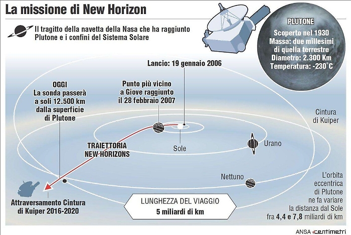 L’incontro ravvicinato con Plutone è il primo contatto con l’avamposto di un mondo primitivo, popolato da miriadi di corpi celesti che racchiudono i segreti dell’origine del Sistema Solare e forse anche le molecole indispensabili per costruire i mattoni della vita. Per questo, per il presidente dell’Istituto Nazionale di Astrofisica (Inaf), Giovanni Bignami, la missione New Horizons della Nasa segna un’altra tappa storica nell’esplorazione spaziale. E oggi la Nasa ha annunciato che sono arrivate le prime foto ravvicinate di Plutone e delle sue lune scattate dalla sonda New Horizons durante il volo radente che ieri l’ha vista sfrecciare sul pianeta nano a 14 chilometri al secondo. Vicino l’equatore di Plutone sono presenti delle montagne di recente formazione alte fino a 3.500 metri. Plutone non è l’unico protagonista delle foto ravvicinate scattate dalla sonda New Horizons. Anche due dei suoi satelliti, Idra e Caronte, hanno catturato l’attenzione dei tecnici della Nasa.