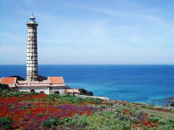 In ordine: il faro di Brucoli, di Levanzo, di Ustica e Siracusa