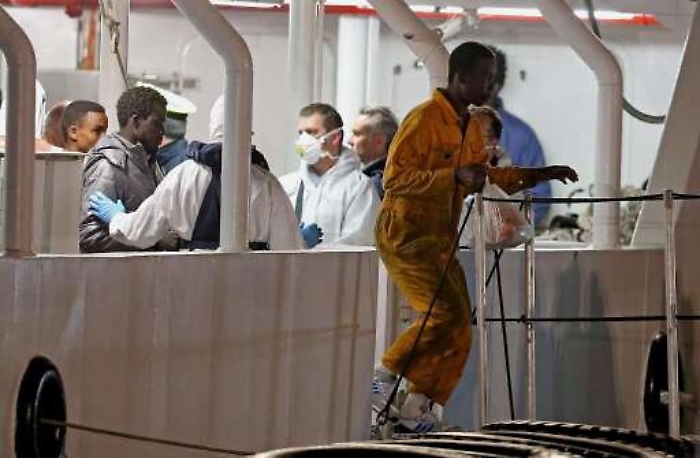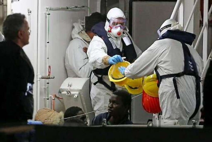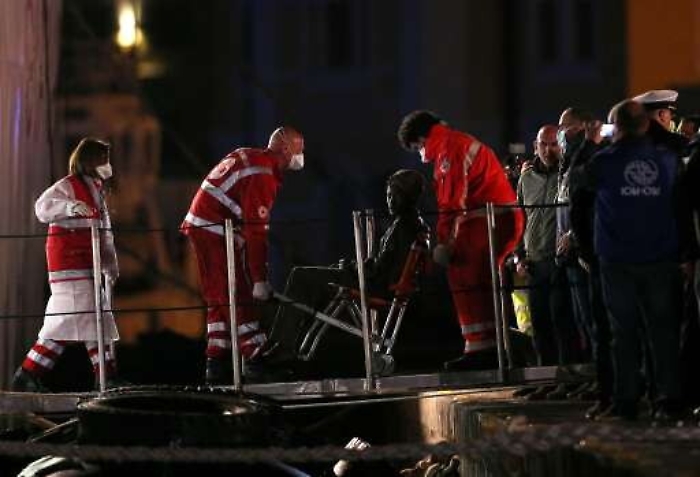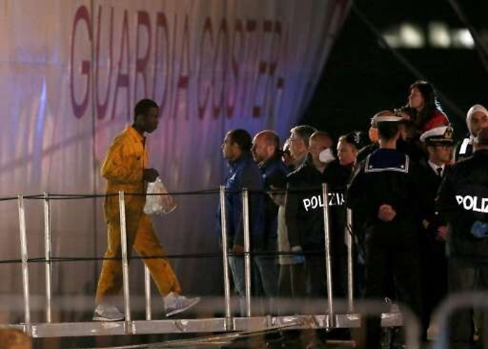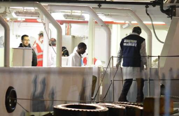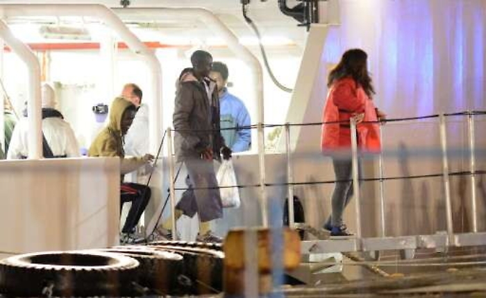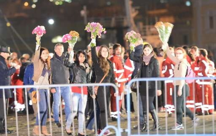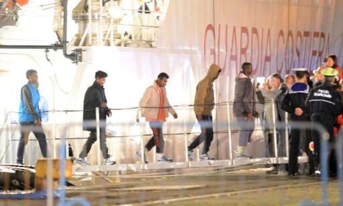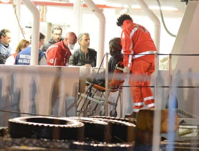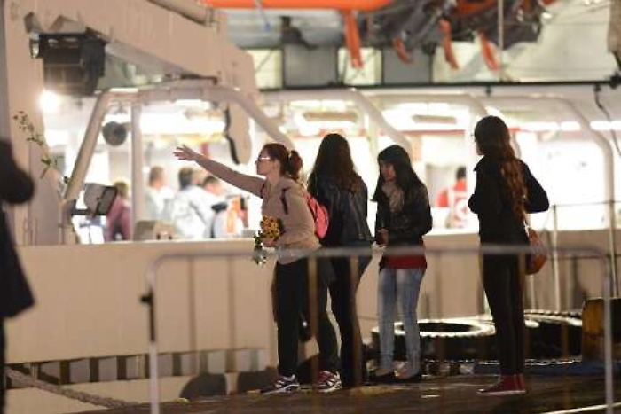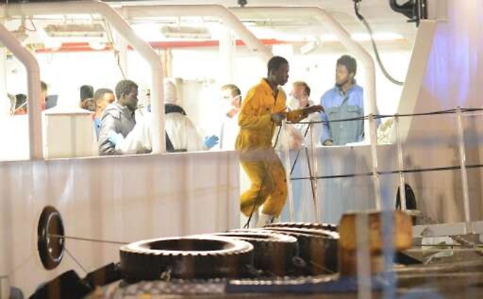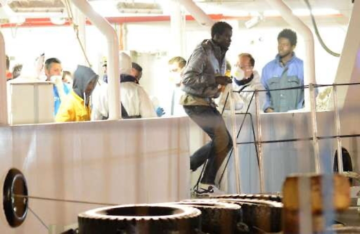 L'arrivo nel porto di Catania dei 27 sopravvissuti al naufragio avvenuto tra sabato e domenica. Catania, 21 aprile 2015. (ANSA/ORIETTA SCARDINO, ANSA/ALESSANDRO DI MEO)