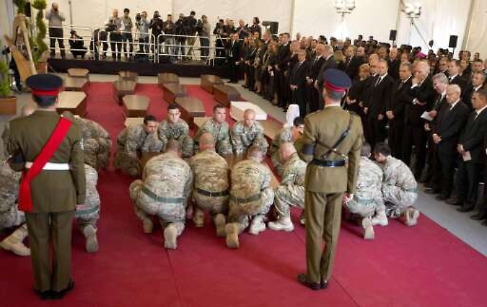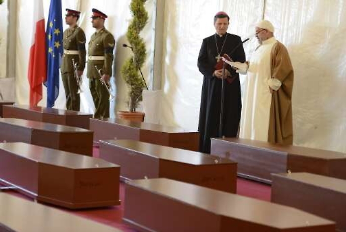 Una folla commossa ha partecipato a La Valletta alla cerimonia interreligiosa per le 24 vittime accertate del naufragio avvenuto sabato scorso davanti alle coste libiche. Le bare dei 24 migranti morti nel disastro, che sarebbe costato la vita a centinaia di profughi i cui corpi non sono stati recuperati, sono state allineate nel piazzale davanti all'ospedale Mater Dei. Una delle vittime era un ragazzo di non più di 15 anni. Tra le autorità presenti alla cerimonia, insieme al presidente della Repubblica maltese Marie Luoise Colero e al premier Joseph Muscat, anche il ministro dell'Interno italiano Angelino Alfano e il commissario Ue per le migrazioni Dimitris Avramapoulos. La cerimonia, che si è svolta con la lettura di brani della Bibbia e del Corano, è stata officiata dal vescovo di Gozo Mario Grech, a causa dell'assenza del vescovo di Malta perchè all'estero, e dall'Imam della comunità musulmana maltese El Sadi. Tra la folla anche numerosi migranti, sbarcati nelle settimane scorse sull'isola Stato. Al termine le salme sono state trasferite nel cimitero Maria Addolorata. La cerimonia funebre si è svolta sotto un tendone. Il vescovo di Gozo Mario Grech, citando le parole del Papa, ha invitato i presenti a combattere la "globalizzazione dell'indifferenza". "Noi piangiamo - ha detto il presule - perché indipendentemente dal nostro credo, nazionalità, razza, questi morti sono prima di ogni cosa esseri umani. In fuga da una situazione disperata, alla ricerca della libertà e di una vita migliore". Un concetto ripreso anche dall'Imam El Sadi che ha sottolineato che le vittime "sono tutti fratelli davanti a Dio". I due officianti hanno inoltre auspicato nelle loro preghiere che i migranti possano un giorno tornare nei loro paese. La cerimonia si è conclusa con la deposizione di una corona di fiori bianchi e con il suono di un'arpa che ha fatto da contrappunto al silenzio delle persone presenti. (FOTO ANSA)