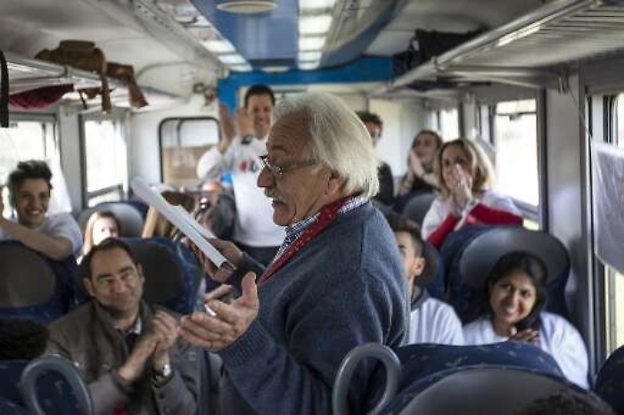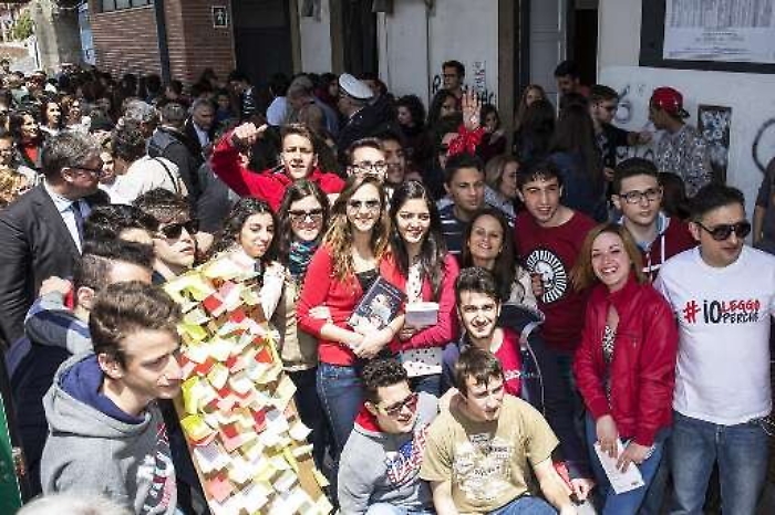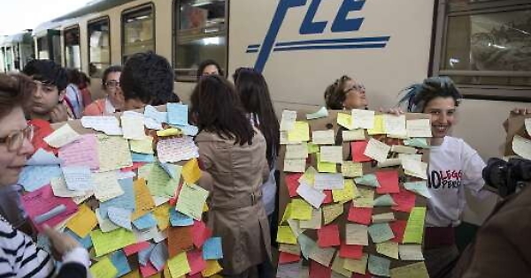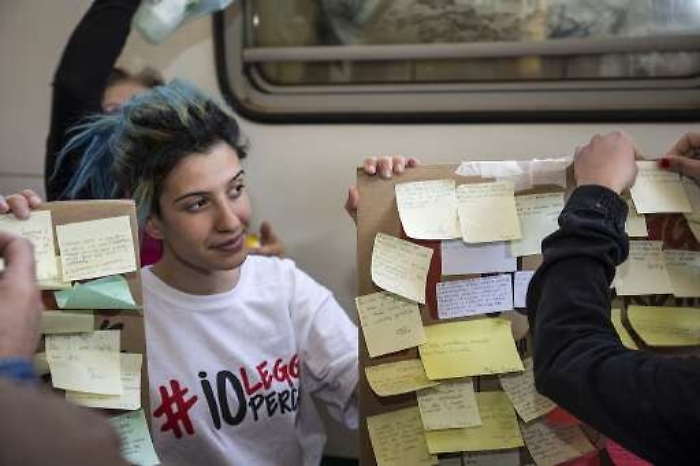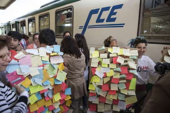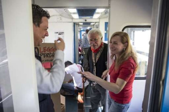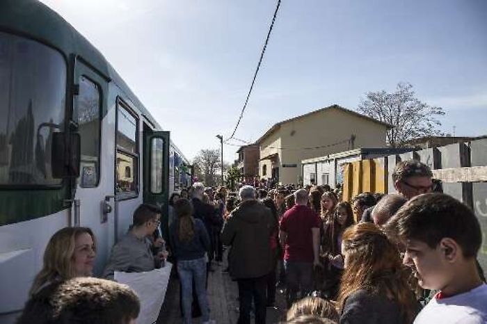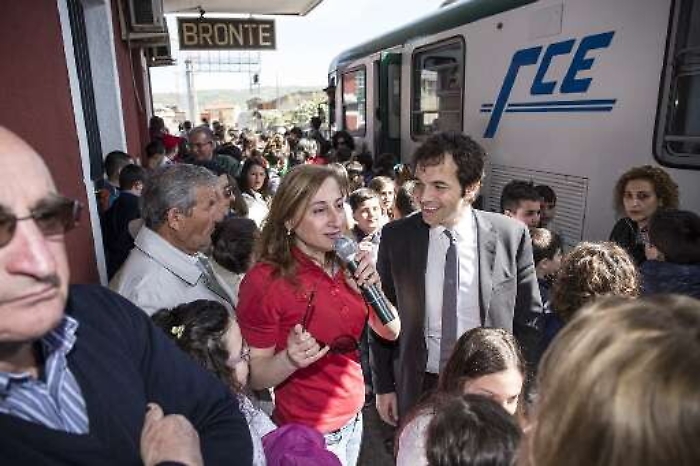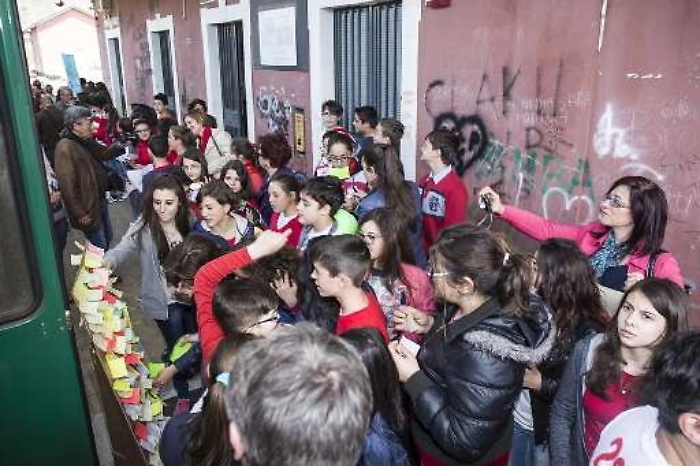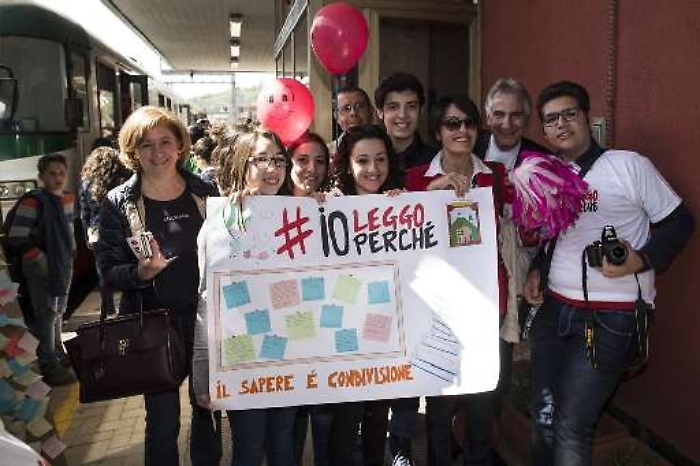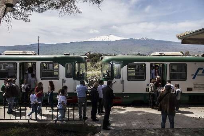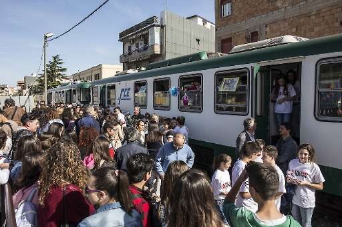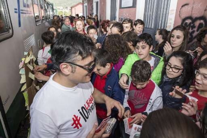 Un viaggio in treno per raccontare il piacere della lettura e il territorio. Si è svolto durante la giornata di ieri “In littorina con storie sotto il vulcano”, l’iniziativa organizzata da Maimone Editore e promossa dalla Ferrovia Circumetnea (FCE) in occasione della “Giornata Mondiale della Lettura e del Diritto d’autore”. Un centinaio di “messaggeri” tra studenti, docenti, autori e istituzioni hanno percorso il periplo dell’Etna e donato i libri di #ioleggoperché ad oltre cento scuole partecipanti. (foto Giorgio Romeo)
