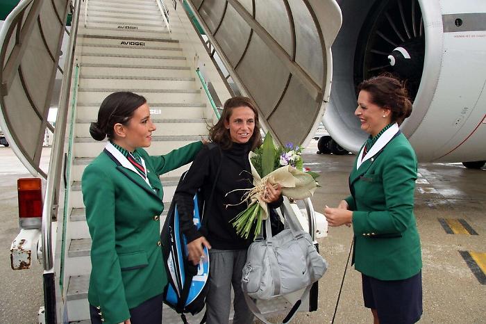 Ad attenderla all’aeroporto di Palermo, con un mazzo di fiori c’erano il sindaco Leoluca Orlando (che ha spinto il carrello con i bagagli della tennista) e i vertici della Gesap, società che gestisce lo scalo. L'ARTICOLO