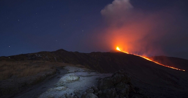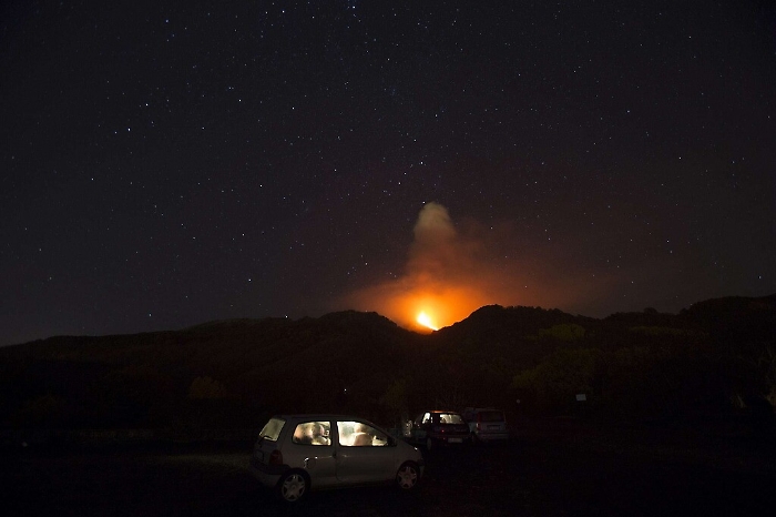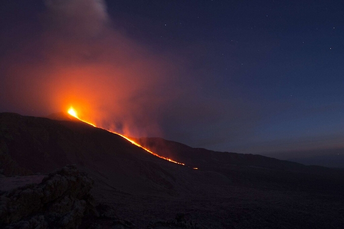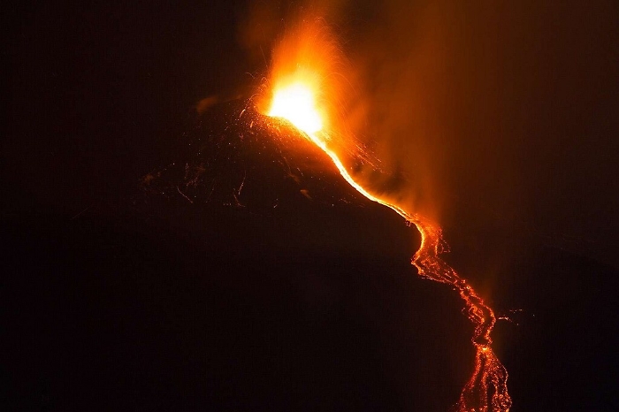 Durante la giornata, le osservazioni sono state parzialmente ostacolate dalla presenza di nubi; con il migliorare delle condizioni di visibilità nel pomeriggio, la telecamera termica a Monte Cagliato ha mostrato la presenza di attività effusiva, che aveva generato due colate laviche. Una era andata in senso nord-orientale per meno di un chilometro e sembrava poco alimentata, l’altra, ben alimentata, avanzava verso est in direzione della Valle del Bove. Al momento, l’attività non mostra variazioni.