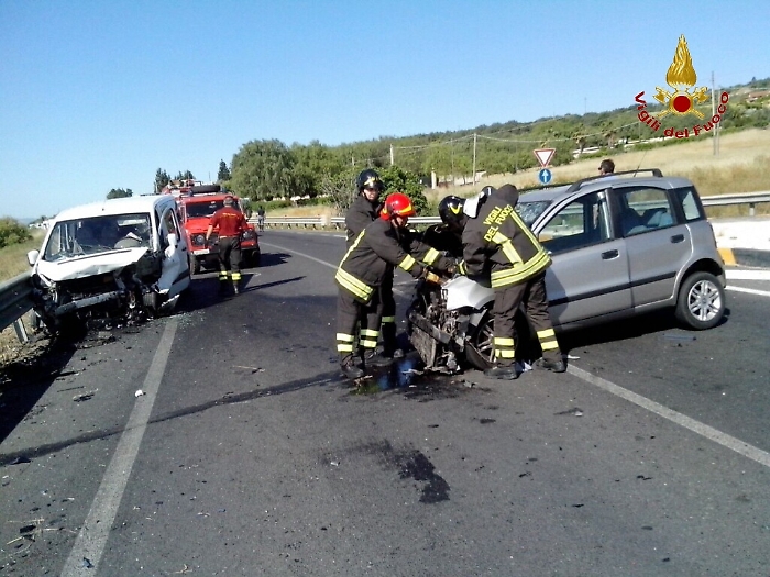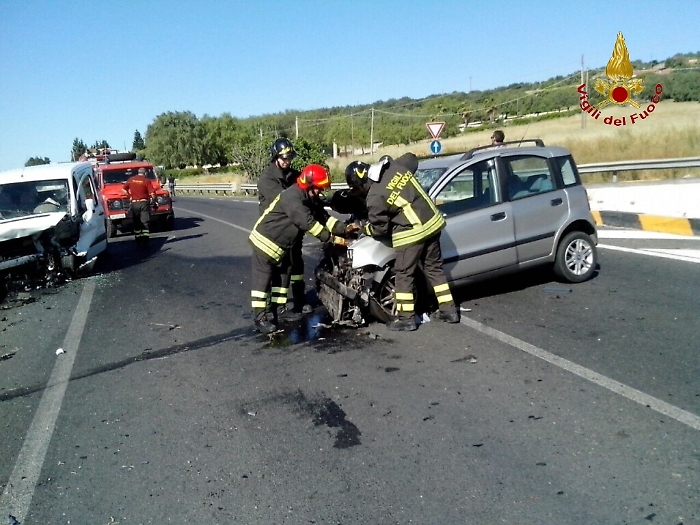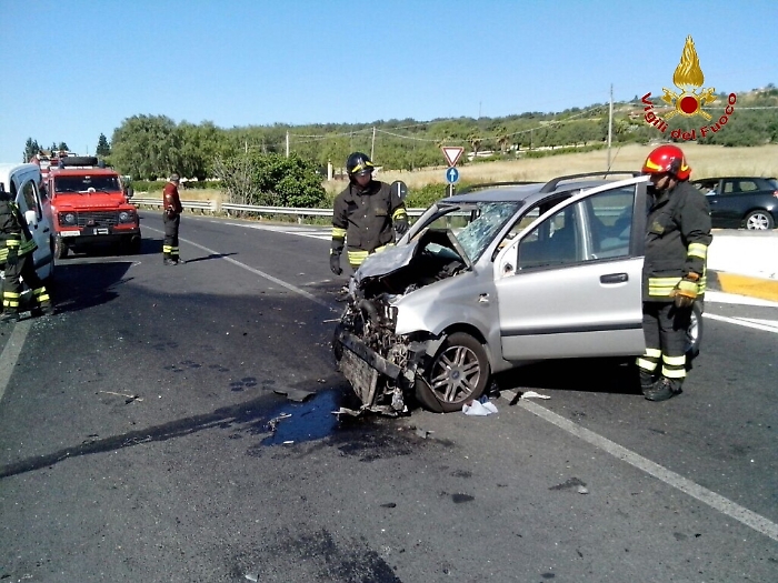 Incidente stradale lungo la Statale 417 Catania Gela, al km 41 + 700 in territorio di Palagonia. Nel frontale sono stati coinvolti una furgone ed una Fiat Panda; i tre occupanti del furgone sono stati trasportati dai sanitari del 118 in ospedale tramite ambulanza, mentre la donna che occupava l'utilitaria è stata trasportata al Cannizzaro di Catania in elisoccorso. Non sarebbe comunque in pericolo di vita. Sul posto sono intervenuti i Vigili del Fuoco del distaccamento di Caltagirone I sanitari del 118 , Carabinieri e Polizia Stradale. (foto dei Vigili del fuoco)