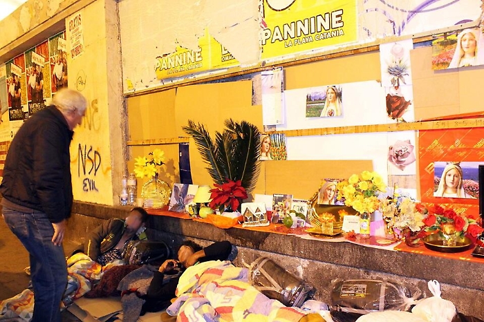 Catania, la Caritas distribuisce sacchi a pelo per i senzatetto