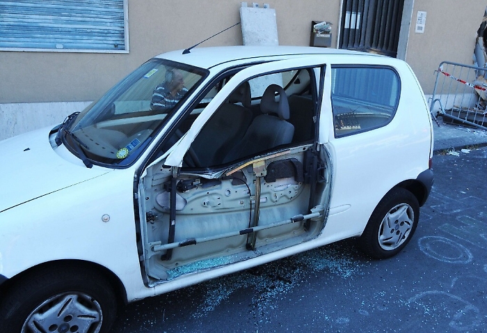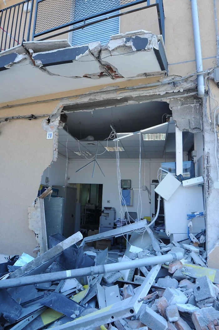 Rumorossimo tentato furto la notte scorsa nel popoloso quartiere di Picanello: in via Galatioto una banda ha asportato dalla parete di un edificio un intero sportello del Postamat dall’ufficio postale che si trova al numero 184, proprio all’angolo con via Maria Gianni. La banda è arrivata con il solito scavatore e ha dato l’assalto al macchinario che eroga contanti. I malviventi sono stati risoluti: in pochi minuti hanno demolito le pareti e caricato su un furgone lo sportello Postamat. Notevoli però i danno all’edificio e ai balconi dell’abitazione che si trova sopra l’ufficio postale. È ancora in corso di valutazione il bottino. [foto Santi Zappalà]