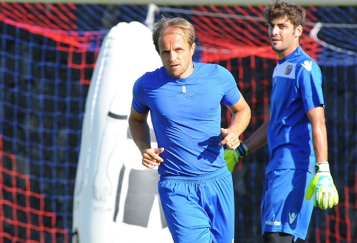 Dopo i tre giorni di visite mediche il nuovo Catania di Pippo Pancaro vede finalmente il campo. Anche senza sapere ancora la categoria in cui giocherà la squadra rossazzurra, è ufficialmente cominciato il ritiro pre-campionato. Il processo è stato fissato per l’11 agosto. Quindi solo a metà agosto si potrà sapere qualcosa sul futuro. Intanto si è aggregato alla squadra il nuovo acquisito, l’ex attaccante del Cosenza, Elio Calderini. E si allena coi compagni anche Davide Baiocco. [foto Filippo Galtieri]