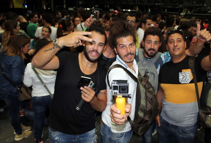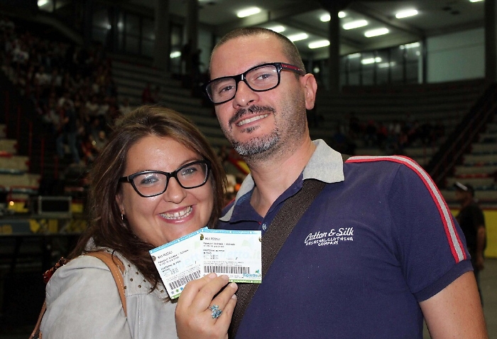I tanti fan accorsi ieri sera al Palasport di Acireale per assistere al concerto del cantautore lombardo Max Pezzali, sulla scena orami da quasi 25 anni. [foto Fabio Consoli]