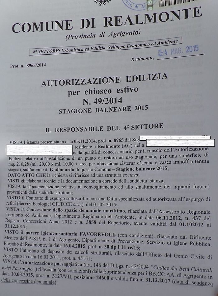Ambientalisti hanno effettuato un blitz sulla spiaggia di Giallonardo dove alcuni imprenditori stanno costruendo un chiosco sulla spiaggia di proprio nel tratto di arenile dove avviene da anni la deposizione delle uova delle tartarughe "Caretta caretta". In pochi giorni - hanno denunciato gli ambientalisti di MareAmico e di Legambiente la spiaggia è stata teatro di scavi e lavori per la realizzazione della struttura, compreso l'interramento di una cisterna per l'acqua potabile. Tutto avrebbe pure delle autorizzazioni che sono state esibite dal sindaco di Realmonte Pietro Puccio dopo un sopralluogo con le associazioni Legambiente e MareAmico.