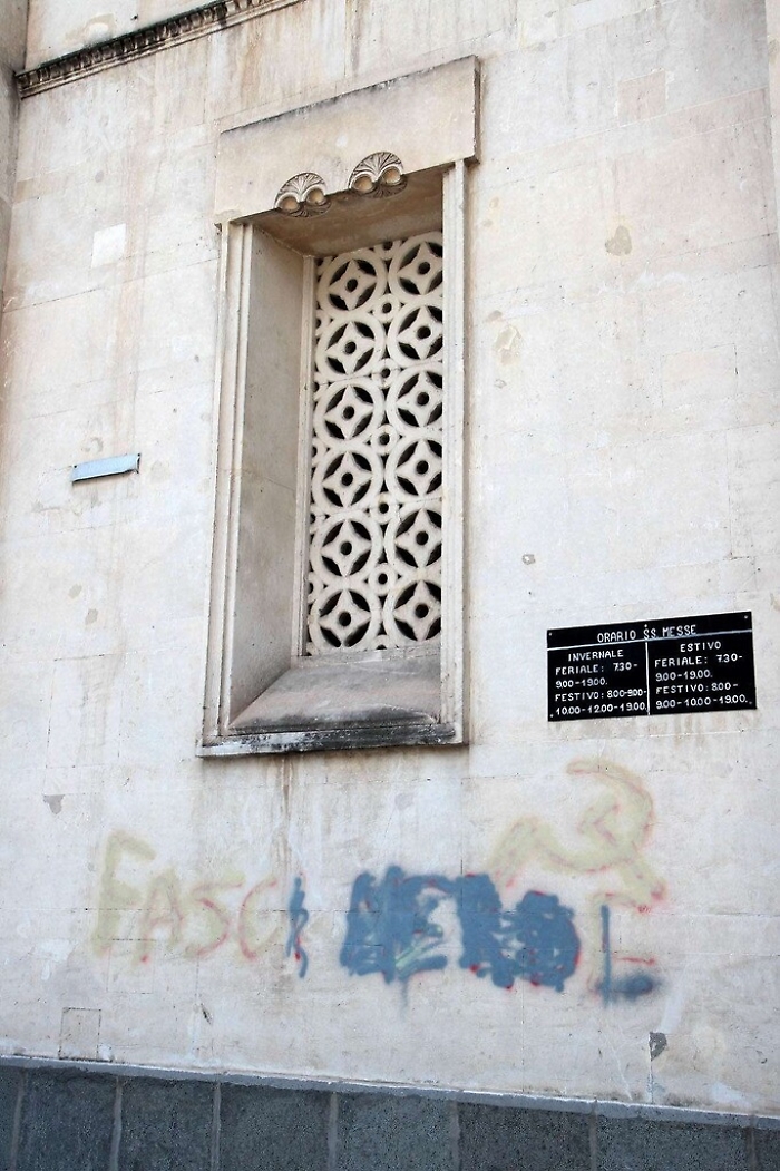 Imbrattata la chiesa della messa per Mussolini