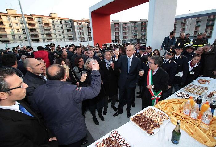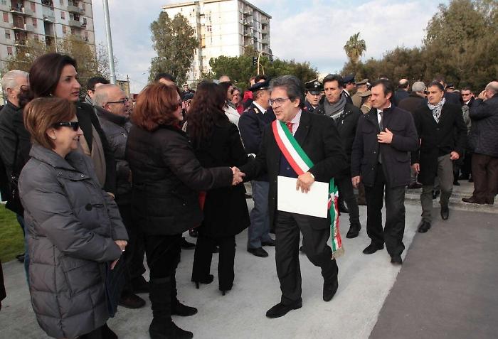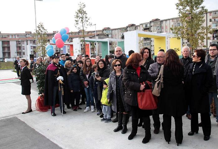 Le immagini dell’inaugurazione della piazza Beppe Montana, poliziotto ucciso dalla mafia nel 1985, a San Giovanni Galermo, nel rione popolare di Trappeto Nord, segnato dal degrado e dallo spaccio di droga. Questa piazza, con annesso campetto di calcio, porta un po di colore fra le vecchia case popolari della zona ed è una speranza per molti abitanti del quartiere. [foto di Davide Anastasi]