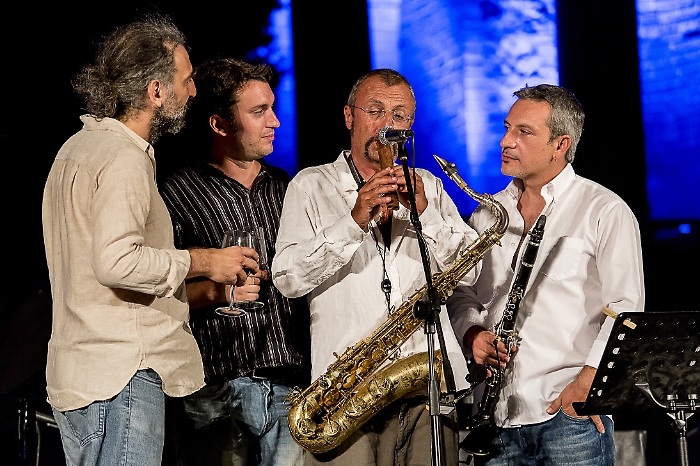 Già, perché, man mano che ci addentriamo nella serata la parola d’ordine diventa sempre più “leggerezza”, intesa nel senso più nobile del termine. Ecco allora Sepe raccontare alcuni aneddoti sulle origini del jazz, compreso quello che vede il siciliano Nick La Rocca tra i suoi inventori. Poi, mentre Bollani improvvisa al pianoforte e Gori ha momentaneamente lasciato da parte il suo strumento per suonare il Fender Rodhes, il suo “monologo” prende in giro «quei pianisti che abbandonano il palcoscenico se qualcuno del pubblico starnutisce e non si esibiscono se la città in cui si tiene il concerto è lontana più di due ore di volo da Nizza (ogni riferimento a Keith Jarrett è stato puramente causale ndr)».