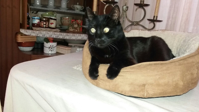 A Milù Amico fidato di nero ammantato compagno di giochi vegliardo silente riscaldi il mio cuore allieti la mente sul sofà disteso muto e incompreso a