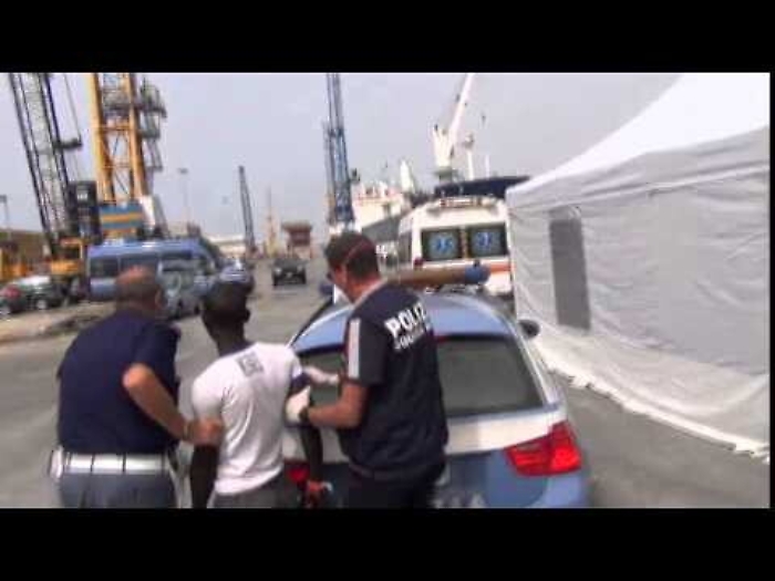 Fermato un gambiano di 28 anni che ha condotto un gommone partito dalla Libia in compagnia del figlioo di 10 anni: "Non avevo abbastanza soldi per tutti e due e ho accettato di condurre il natante per dare un futuro a mio figlio". (video Polizia di Ragusa)