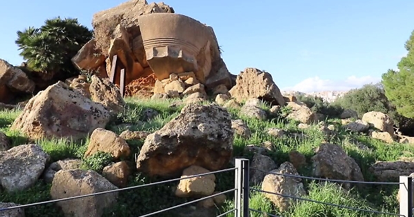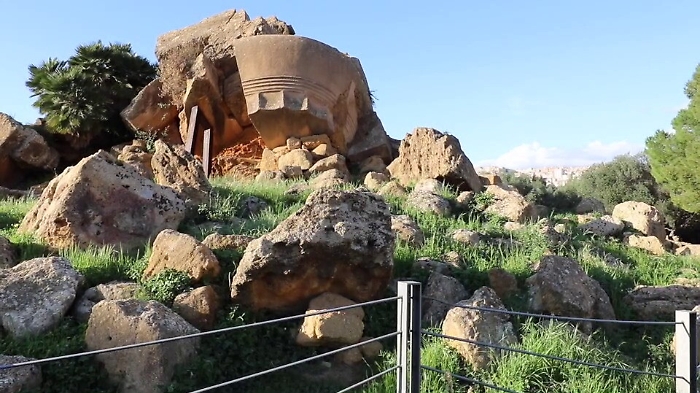 Oggi si cerca di ridisegnare la mappa dell’Olympieion, crollato dopo un terremoto nel 1401, e del tutto sconquassato nel XVIII secolo quando gran parte dei suoi blocchi di calcare furono utilizzati per costruire il molo di Porto Empedocle. Lo stesso Goethe descrisse i resti del santuario come “ossami d’un gigantesco scheletro”. Il telamone attualmente disteso all’interno della cella del tempio, è infatti una copia fedele della prima statua ricostruita su disegno di Charles R. Cockrell da Raffaello Politi agli inizi dell’800, che è oggi conservato al Museo archeologico.