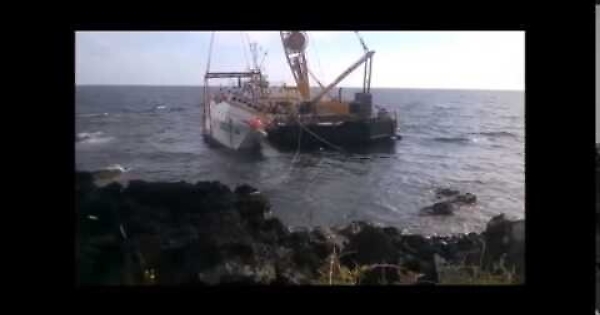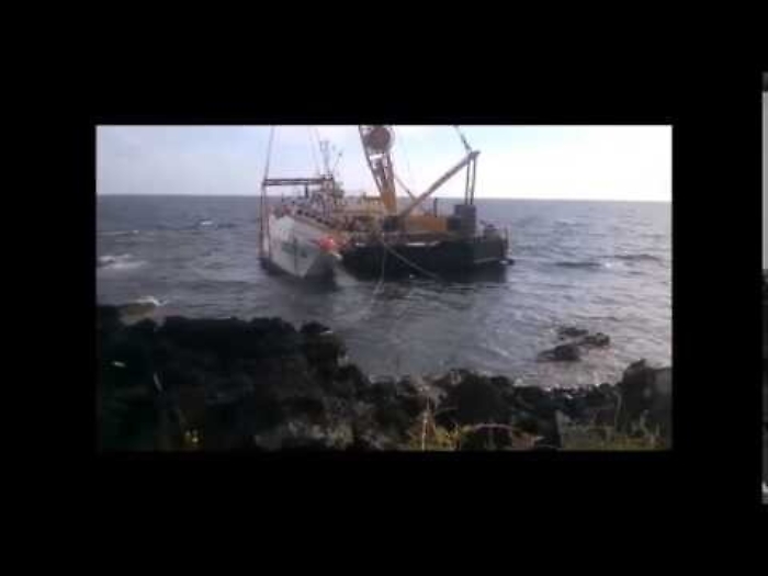 Un motoponte ha disincagliato il peschereccio Red Fish che si era arenato a Linosa (video MareAmico/Facebook)