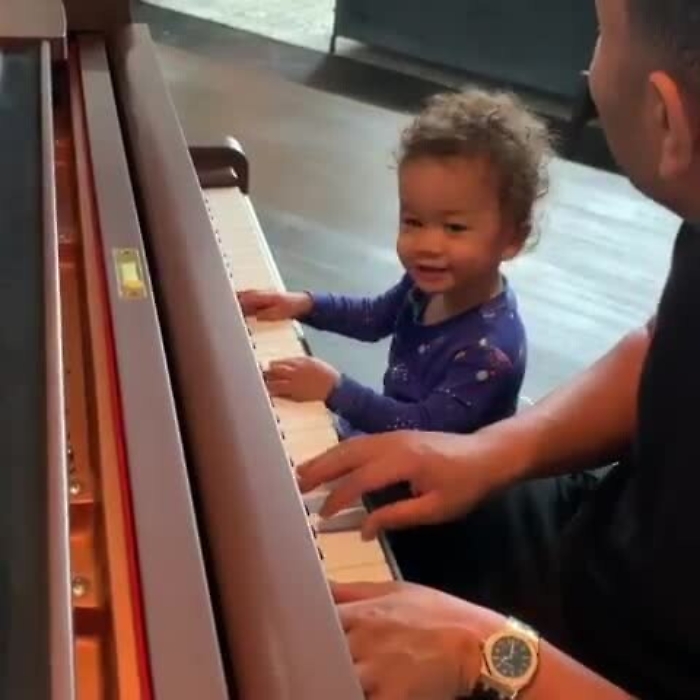 John Legend al pianoforte con il figlio di un anno: tale padre tale figlio....