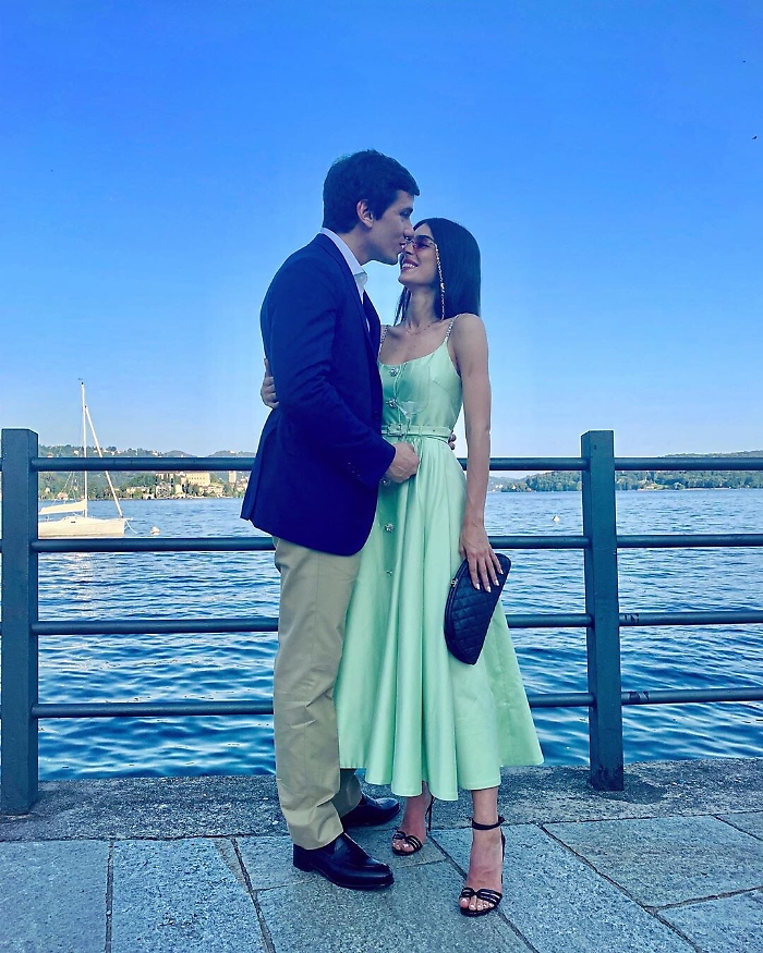 Dal cancello presidiato dalla sicurezza sono sfilati una quindicina di auto e van con i vetri oscurati. Dieci minuti prima delle 17 è arrivato quello con a bordo la sposa, 31 anni, uno meno del marito, originaria di Sirone, nel Lecchese, figlia di un imprenditore tessile e cofondatrice di una società di pubbliche relazioni. Si è intravisto il velo dell’abito bianco realizzato dall’amica stilista Alessandra Rich. Un piccolo frammento di immagine di una cerimonia (celebrata da un sacerdote domenicano) decisamente riservata, nello stile della coppia. I due sposini da tempo vivono in via Rovani a Milano, nella villa che è stata a fine anni '80 la residenza di Silvio Berlusconi.