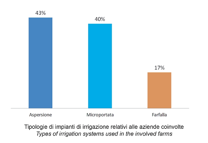 Ma sappiamo molto anche della composizione dei terreni, dell’approvvigionamento idrico e delle pratiche irrigue che ancora manifestano un range molto elevato dei consumi specifici dichiarati dalle aziende, indicativo di una gestione a volte poco efficiente dell’irrigazione, con consumi molto elevati dove l’acqua non scarseggia: molte aziende hanno pozzi privati, l’acqua che viene dai consorzi di bonifica o dai consorzi irrigui privati è di fondamentale importanza nonostante le reti distributive presentino importanti criticità e i costi siano elevati, gli invasi aziendali sono ritenuti fondamentali (li possiede il 31% dei produttori nel territorio di Catania/Enna, il 16% di quelli del territorio di Agrigento); abbiamo informazioni sul numero di irrigazioni effettuate (più di 21 per anno nel 39% dei casi), sulle tipologie degli impianti irrigui (che per il 43% sono ancora in “aspersione”, tecnica meno efficiente di altre; il 40% è in “microportata”, il 17% a “farfalla”); ancora pochi utilizzano sistemi tecnologici per il telecontrollo dell’irrigazione (soltanto il 7%).