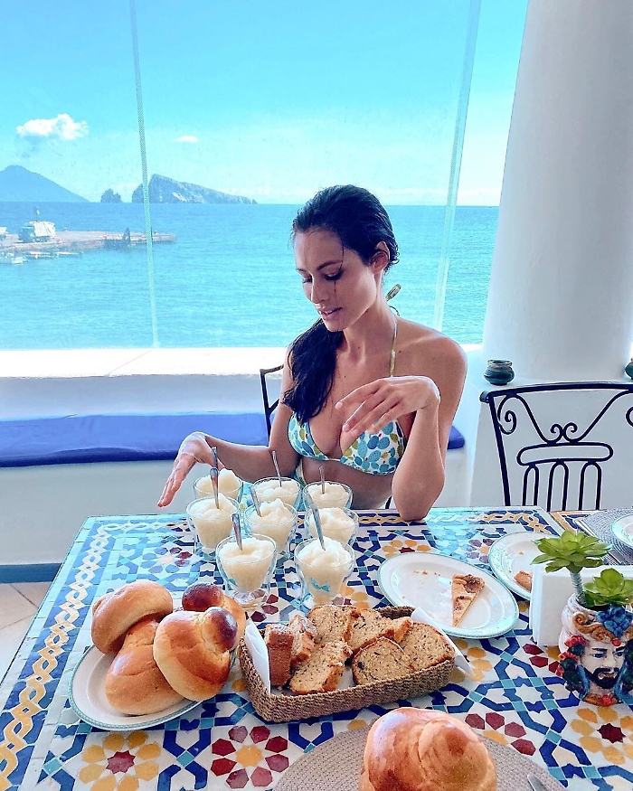 Non è chiaro se le abbia soltanto guardate o se le abbia anche assaggiate. Di certo c'è che Marika Pellegrinelli, ex moglie di Eros Ramazzotti, si è lasciata immortalare a Panarea, in una versione già estiva, tra granite e brioche con il tuppo. La modella è arrivata in Sicilia da Milano per uno c e non ha resistito a postare sul suo profilo Instagram, la bellezza, oltre alla sua, della terra che la ospita. Nelle sue stories anche due foto del Giardino Bellini di Catania che attesterebbero il passaggio dalla città etnea. E sull'ingresso nell'Isola, ancora in tempi di lockdown, la modella di origini bergamasche avrebbe precisato di aver superato il test sierologico così come il resto della troupe che l'accompagna.