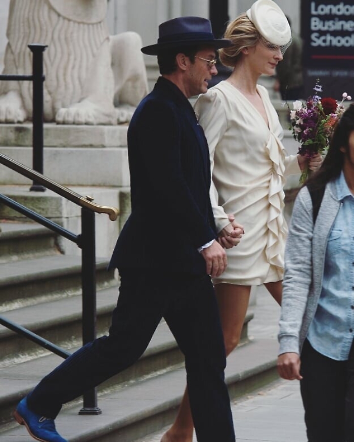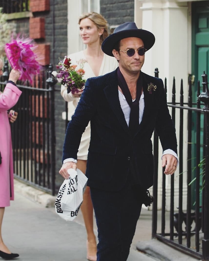 Il bello dei belli è convolato a nozze. Jude Law, attore britannico, ha impalmato a Londra la sua Phillipa Coan ed è stato lui stesso a postare le foto del matrimonio accompagnando le foto con un "the happiest day" (il giorno più felice). L'attore, interprete di tanti film di successo e della serie tv The New Pope, ha sfoggiato un look non proprio da sposo classico. Cappello a falda largo, occhi da sole, maglia bianca e una cravatta-foulard allentata sul collo. Lei invece era in abito bianco corto con ruches sul davanti e cappellino. Le nozze sono avvenute un po' a sorpresa, pare che l'attore volesse celebrarlo nel rispetto della privacy. Law ha alle spalle una separazione ed è padre di cinque figli avuti da compagne diverse. La Coan è fondatrice di Stride, un'azienda di gestione e consulenza psicologica per risorse umane. Riuscirà a domare il cuore di Law una volta per tutte? Vedremo.