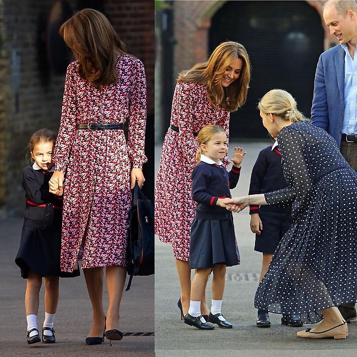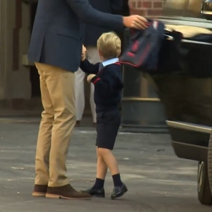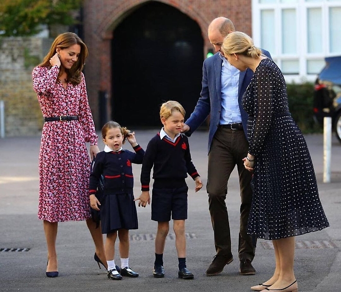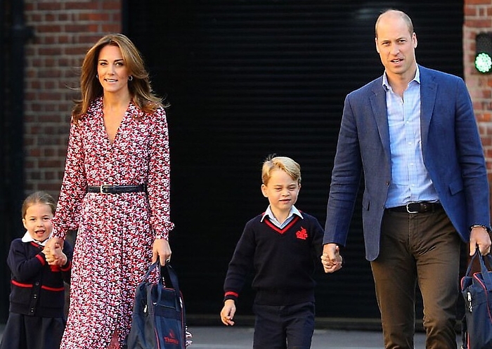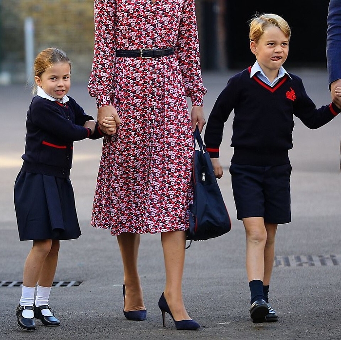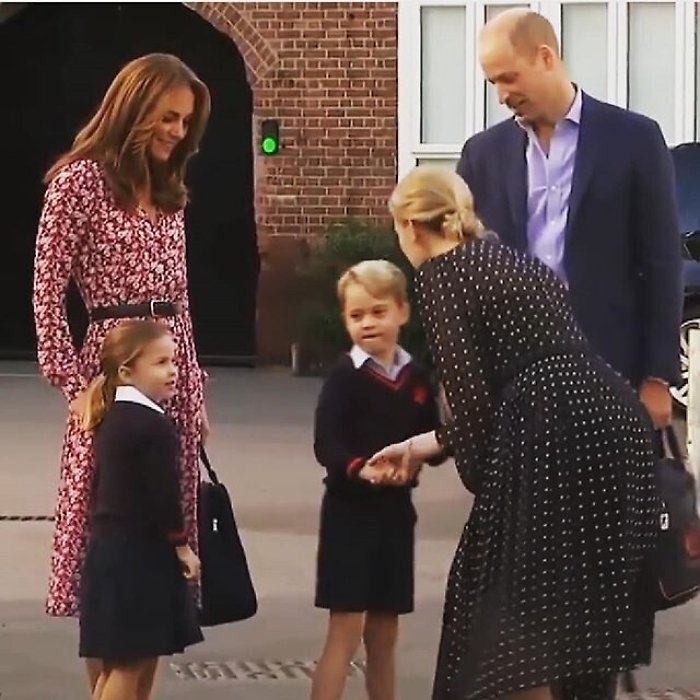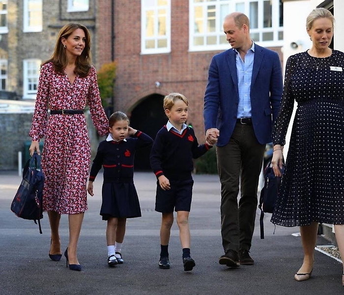 La scena, ritratta dagli obiettivi, ha avuto un’immagine familiare: con i due bambini - rigorosamente in uniforme scolastica, lui più sorridente, lei a tratti ritrosa - mano nella mano con entrambi i genitori sulla strada verso l’ingresso della Thomas's Battersea school, una scuola privata dalle rette decisamente elevate nella zona della capitale sulla riva sud del Tamigi. Ad accoglierli è stata Helen Haslem, direttrice nell’istituto della materna e delle elementari. Inevitabile, ma discreta, la presenza della polizia, dopo i timori per la sicurezza di George denunciati in passato proprio attorno alla scuola.