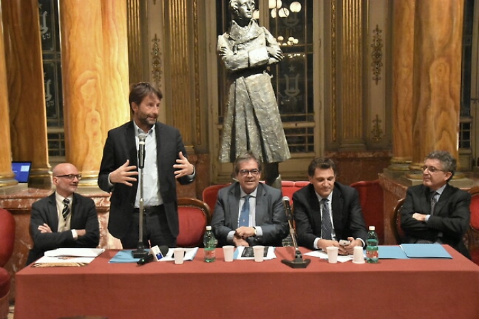 CATANIA - Presentazione della stagione lirica al Bellini di Catania. Foyer affollatissimo con pubblico in piedi per la presenza del Ministro dei Beni e delle Attività Culturali e del Turismo, Dario Franceschini che ha parlato della possibilità di ragionare sulla proposta di cambiare la natura del Bellini: da autonomo regionale potrebbe diventare  una fondazione. Franceschini ha anche annunciato il sostegno al Bellini Festival, così come accade con gli altri festival dedicati ai grandi compositori italiani, comunque vadano - ha aggiunto - le elezioni regionali. Presenti tra gli altri Enzo Bianco, sindaco di Catania e presidente del Teatro Massimo Bellini,  Anthony Barbagallo, assessore al Turismo, Sport e Spettacolo della Regione Siciliana, Roberto Grossi, sovrintendente del Teatro Massimo Bellini e Francesco Nicolosi, direttore artistico del Bellini.