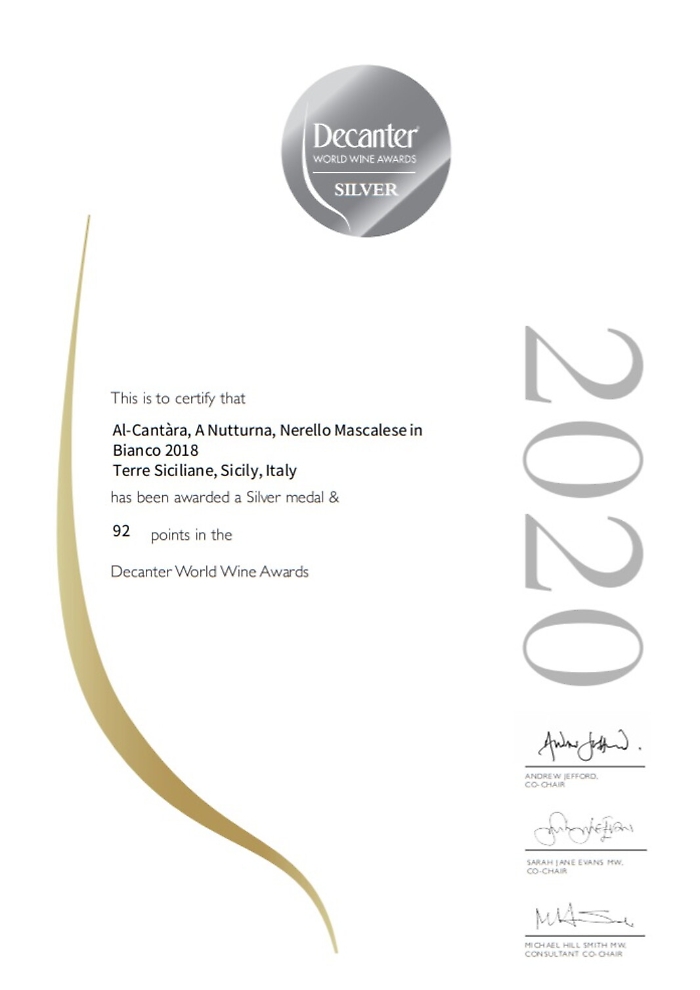 RANDAZZO (Catania) - Con una medaglia d'oro per "O Scuru O Scuru" - vibrante Etna rosso Doc del 2017 - e due d'argento assegnate dal "Decanter Wine World Awards 2020" - il concorso enologico più importante al mondo, promosso dall'omonimo wine magazine -, Al-Cantàra di Randazzo porta a casa un bottino tra i più prestigiosi, in termini di punteggio complessivo (280 punti), fra tutte le cantine dell'Etna che hanno partecipato a Londra all'annuale competizione. Nel dettaglio: medaglia d'oro e 95 punti su 100 per l'Etna Rosso DOC 'O Scuru 'O Scuru 2017, ottenuto da grappoli del vitigno etneo per eccellenza, il nerello mascalese, raccolto a mano da antichissimi ceppi prefillossera sparsi a macchia di leopardo nella tenuta e qui vinificato in purezza; le medaglie d'argento sono invece per Luci Luci 2018 (Etna Bianco Doc da uve carricante, altra cultivar autoctona dell'Etna a bacca bianca) con 93 punti e per 'A Nutturna 2018 (IGP Terre Siciliane, bianco di nera da uve di nerello mascalese vinificate in bianco) al quale sono stati assegnati 92 punti.