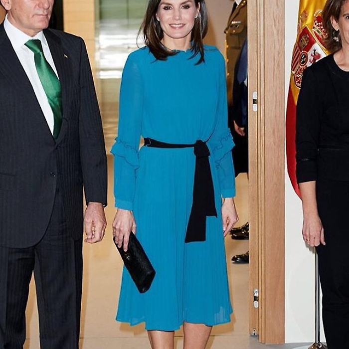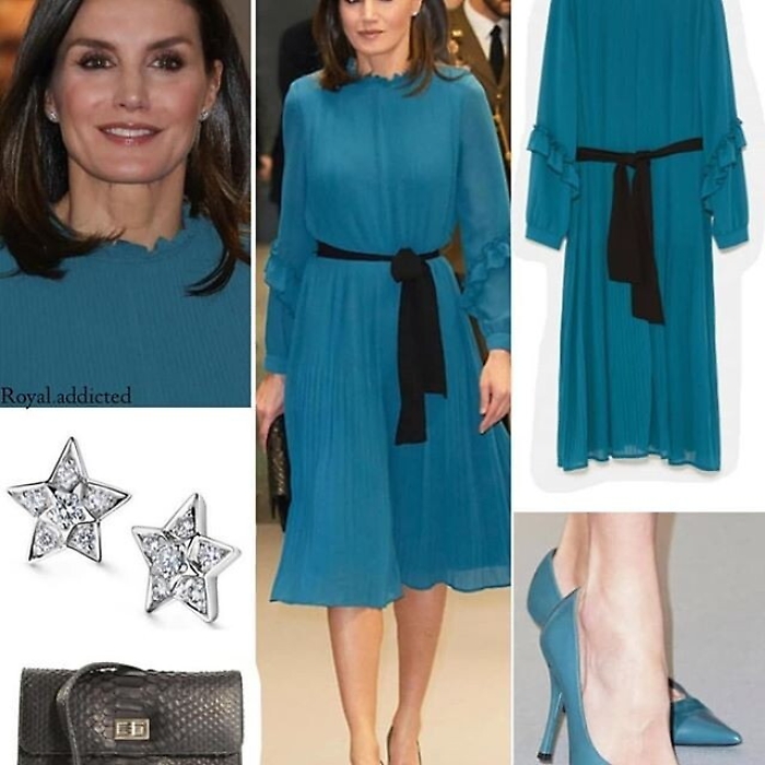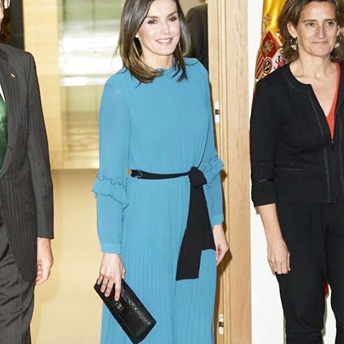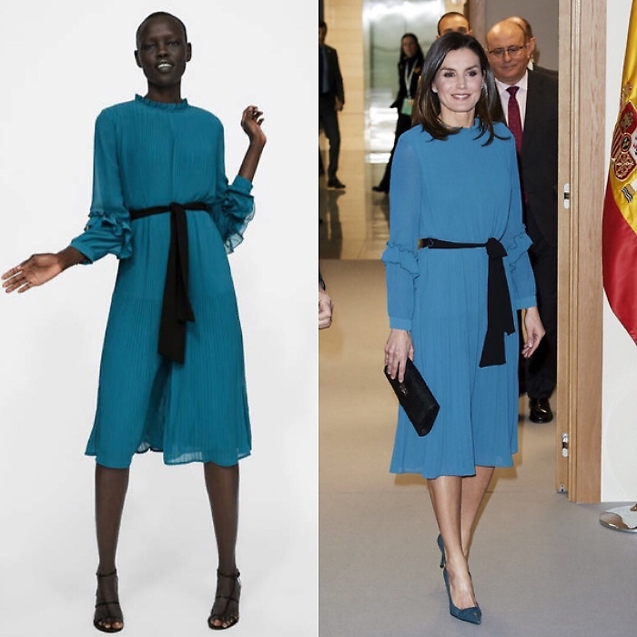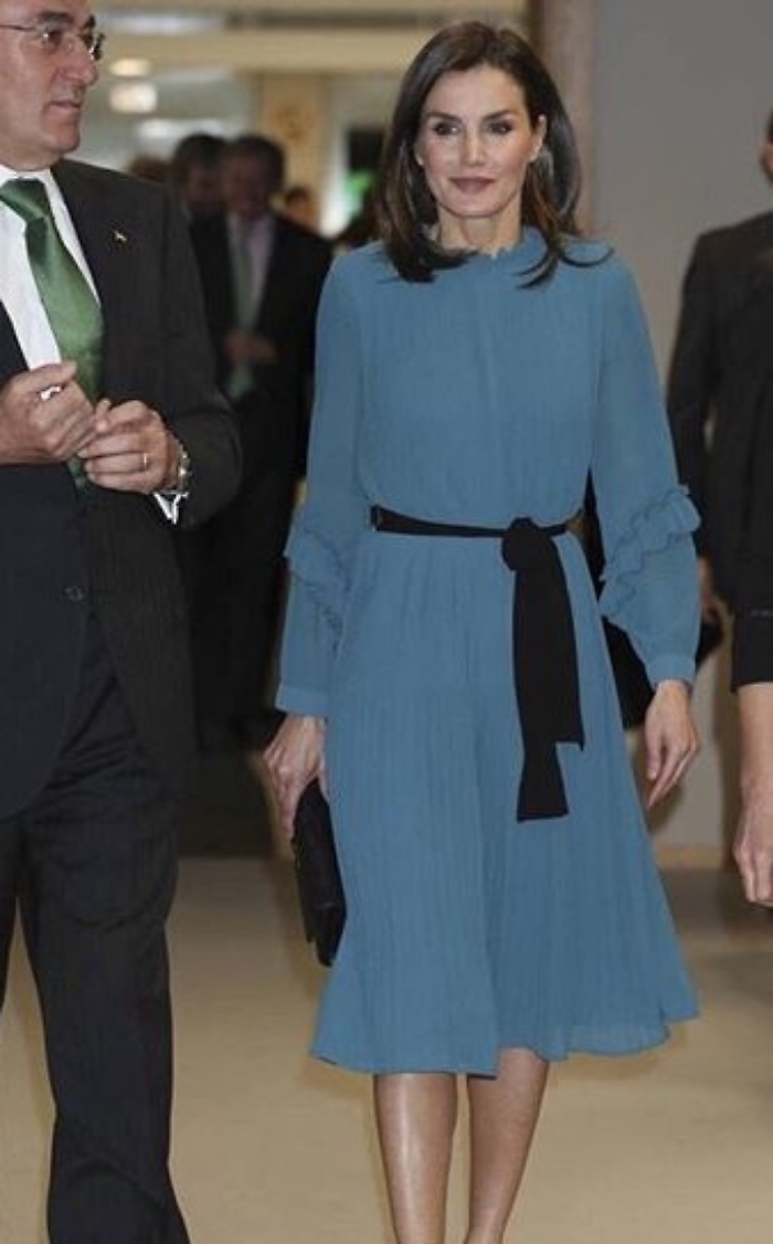 La regina Letizia di Spagna fa tendenza. Anche quando indossa un semplice vestito di Zara (azienda spagnola di abbigliamento a buon mercato famosa nel mondo). La bella sovrana, sempre molto glamour e aiutata anche da una silhouette che a volte ha fatto temere per la sua salute a causa dell'eccessiva magrezza, ha attirato l'attenzione di molti giornali e riviste per l'eleganza sfoggiata con pochi spiccioli. Non che la regina abbia problemi di budget, ma Letizia, ex giornalista e donna dal tratto indipendente, in diverse occasioni non ha disdegnato il marchio low cost nato proprio in terra spagnola. Pochi giorni fa partecipando ai "Grants for Master's and Research Aid" della Fondazione Iberdrola, la consorte del re Filippo VI di Spagna si è presentata con un delizioso abito azzurro di media lunghezza e con volant sulle maniche. Costo del vestito, della collezione autunno-inverno 2018-2019, 39,95 euro, in saldo 12,99. Ma è inutile cercarlo: Letizia, com'era prevedibile, lo ha mandato in sold out!