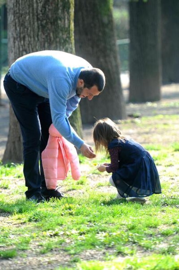 In ogni caso mentre lei gli stira le camice, lui fa il tenero papà al parco con la piccola Mirta, uno dei due figli (l'altro è il quindicenne Federico) che l'esponente politico ha avuto da una precedente relazione. La coppia, che appare sempre più affiatata, ha trascorso le recenti vacanze di Pasqua a Ischia.