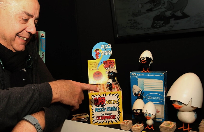 «Il mio personaggio preferito di Carosello? Calimero - dichiara il “bambino” Edo - perché, poverino, era sempre massacrato da tutti e poi sono molto legato alla mucca Carolina. La domenica era un rito mettere la cesta con i punti-raccolta sul tavolo e attaccarli con la colla alle schede per poi ritirare i premi. Galbani, Invernizzi, Ava, c’era una lotta per accaparrarsi i gonfiabili e anche i vari gadget che le aziende regalavano con i prodotti». Pupazzi in lenci, moplas, gonfiabili, tutti rigorosamente Made in Italy. Oggi esiste anche chi produce Susanna tutta panna Made in China, ma i veri collezionisti nemmeno la guardano. «La più grossa soddisfazione? Un turista tedesco entrato a vedere la mostra. L’assistente stava cercando di spiegare cosa fosse Carosello, lui in un italiano stentato ha sorpreso tutti “E dopo Carosello, tutti a nanna!”, meraviglioso».