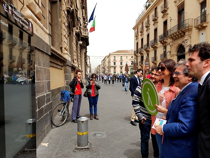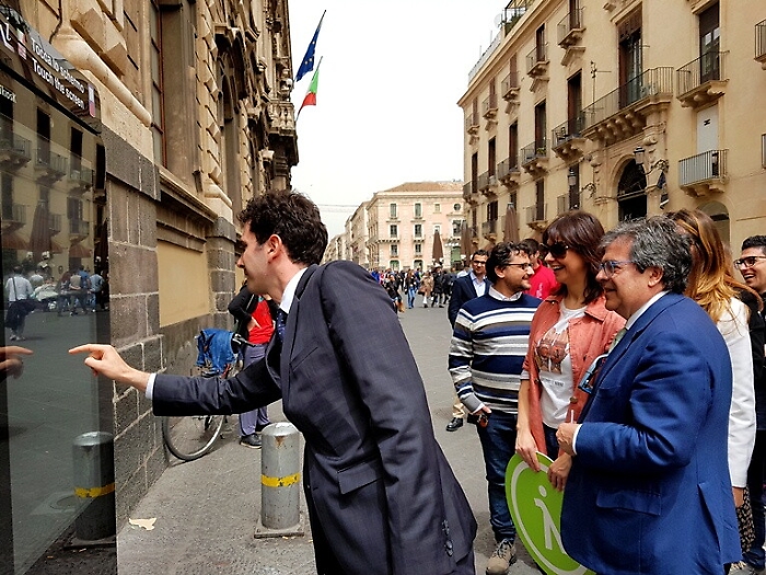 Ad accenderlo, questa mattina, è stato il sindaco di Catania Enzo Bianco, sottolineando che un importante test su questo totem multimediale lo avremo già stasera con la Notte dei Musei. Con Bianco c'erano erano Fabrizio Garufi e Sarah Bersani. L'ingenere Garufi in rappresentanza dell'azienda catanese TechLab Works, fondata e gestita da giovanissimi ingegneri siciliani, che ha realizzato e messo a disposizione DigiKiosk.  Sarah Bersani è l'editore dell'agenzia di comunicazione catanese Industria01 al cui progetto si devono le informazioni diffuse dal totem digitale.