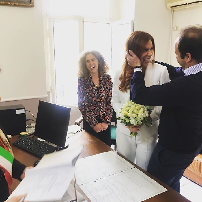 "Felice di essermi sposata nei luoghi della mia memoria, il posto del cuore della mia infanzia più bella. Grazie a tutti i concittadini di Piano di Sorrento che mi hanno accolta con il calore di sempre". Per l'artista, mamma di tre bambini (Riccardo Filippo, Tancredi Francesco e Katia Eleonora) si è trattato del terzo matrimonio, sempre però con lo stesso marito. Il primo era stato era stato celebrato il 4 gennaio del 2017, nella Repubblica Dominicana; nozze per così dire da spiaggia e non valide per la legge italiana. Il secondo sì è stato pronunciato in Comune all'inzio di quest'anno e l'ultimo, lo scorso 24 aprile, nella chiesa di Santa Maria Delle Grazie a Marina di Cassano. Sarà davvero l'ultimo? E chi lo sa...
