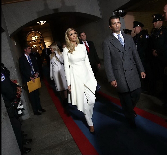 Nel giorno dell'insediamento di Donald Trump a 45esimo presidente degli Stati Uniti d'America, a spiccare sono state soprattutto le "donne" del tycon. Dalla moglie Melania, ex modella, che ha scelto l'azzurro e che è già stata accostata, per la mise indossata, a Jackie Kennedy, alle figlie Ivanka e Tiffany, entrambe in bianco. Bianco e color panna anche per la grande sconfitta della scorsa competizione elettorale a stelle e strisce Hillary Clinton mentre l'ormai ex inquilina della Casa Bianca Michelle Obama ha scelto un abito e soprabito in tinta color bordeaux. Nel giorno del suo arrivo a Washington, la nuova first lady aveva invece indossato un cappotto nero. Melania, per la sua bellezza e per il suo portamento, è quasi certamente destinata a diventare una nuova icona di stile.