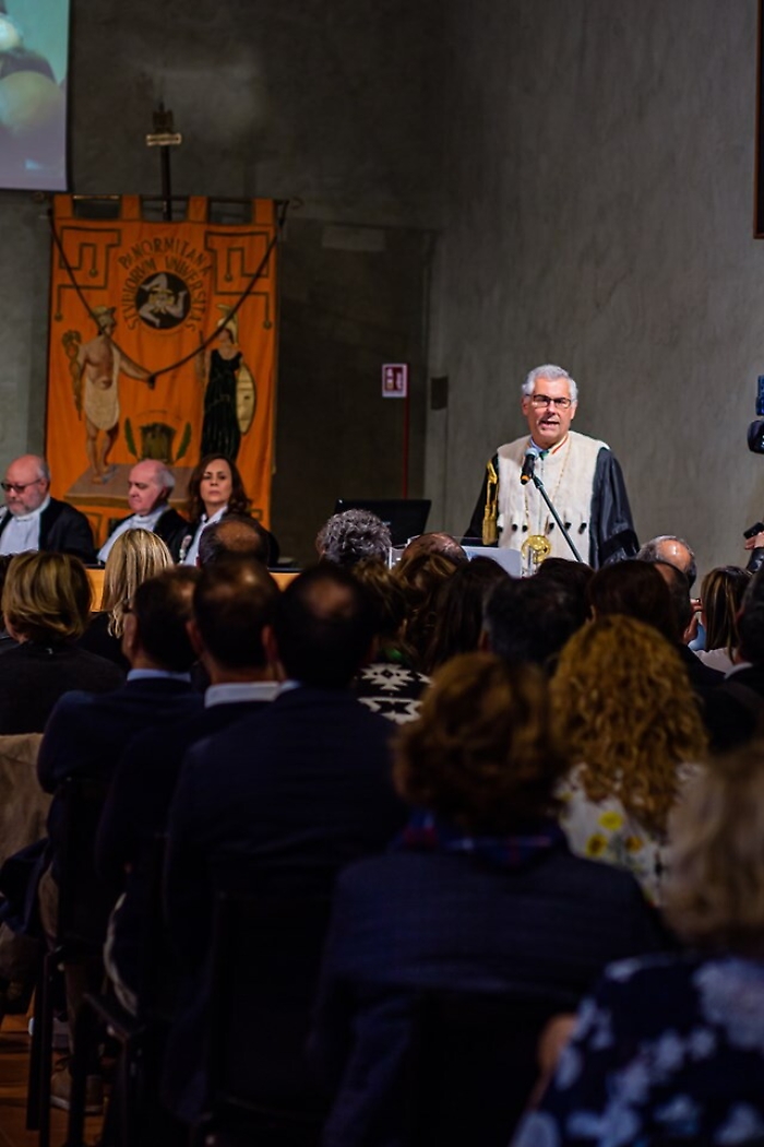 Agli indirizzi di saluto del rettore, del presidente della Scuola delle Scienze umane e del Patrimonio culturale, Girolamo Cusimano e del direttore del Dipartimento Culture e Società, Michele Cometa, sono seguite la lettura della motivazione del coordinatore del Consiglio del corso di studio in Scienze della Comunicazione, Salvatore Vaccaro, e la laudatio della docente di Filosofia Politica, Serena Marcenò. Alberto Angela ha poi tenuto la lectio magistralis «Divulgare la cultura».