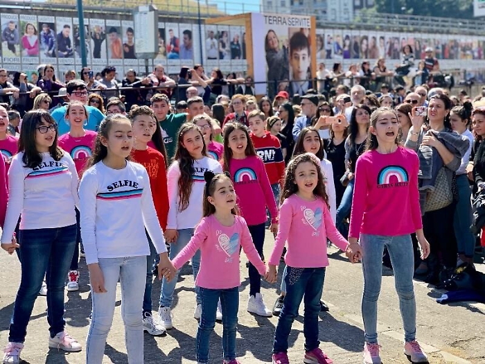 Catania - "Dolce sentire come nel mio cuore, ora umilmente sta nascendo amore". Nel canto d’ispirazione francescana, intonato questa mattina dai giovani dell’Orchestra dell’Istituto comprensivo Angelo Musco, c’è tutto il senso dell’opera del mecenate Antonio Presti. Perché dolce è capire che non siamo soli, ma parte di una immensa vita, «e questa comunità risplenderà di luce grazie agli sguardi di chi, ogni giorno, restituirà Bellezza all’Altro attraverso questi ritratti – ha sottolineato il presidente di Fiumara D’Arte – con la potenza delle parole di una preghiera che risuona tutt’intorno, in segno di una rivelata fiducia».