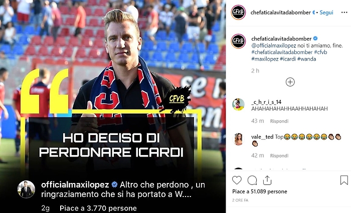 La saga adesso si arricchisce di un nuovo capitolo per un post, di cui però si sarebbero perse le tracce, che Lopez avrebbe pubblicato sul profilo Instagram di chefaticalavitadabomber e in cui avrebbe scritto di aver perdonato Icardi ringraziandolo di essersi portato via la sua, ormai, ex moglie. La bella Wanda, che con Icardi e la famiglia ormai trascorre parte della sua vita a Parigi dopo l'uscita del marito dall'Iter, sembra non voler rispondere all'ennesimo affondo. E semmai risponde continuano a postare foto supersexy che la ritraggono così come mamma l'ha fatta. Che il prossimo rimbrotto arriverà dall'attuale marito?