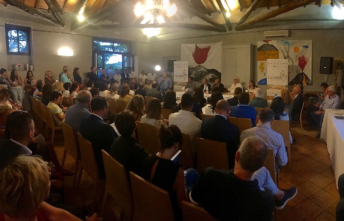 Perfettamente in equilibrio fra passato e presente – tra la frugalità della civiltà rurale e gli stimoli della contemporanea cultura del vino, delle eccellenze agroalimentari e della tecnologia digitale (i biglietti per le degustazioni si acquistano online) – e dopo il boom di presenze del 2018 con oltre 50.000 visitatori, per questa edizione numero trentanove di ViniMilo (23 agosto - 8 settembre), il sindaco Alfio Cosentino e il comitato cittadino hanno messo a punto un ricco calendario di eventi fra cui spiccano ogni giorno degustazioni di bianchi (fra cui l’Etna Bianco Superiore DOC, prodotto solo a Milo da uve carricante), rossi, rosati, spumanti dell’Etna ed etichette provenienti da diverse regioni italiane ed europee ma anche – novità - la “Collazione del vendemmiatore”: robusto e goloso break mattutino nelle faticose giornate di vendemmia sull’Etna sconosciuto alle giovani generazioni cresciute in città (31/8 e 7/9). Con il Comune e la Proloco di Milo sono partner di ViniMilo le aziende vitivinicole Barone di Villagrande, Benanti, I Vigneri e Tenute di Nuna, l’osteria “4 Archi” e l’agriturismo “Le Case del Merlo” e numerose altre aziende. La manifestazione è stata presentata ieri pomeriggio nell’azienda Villagrande dal sindaco insieme con Marco Falcone (Assessore Regionale alle Infrastrutture e Trasporti), Piero Portale (componente del CdA del Consorzio Etna Doc), Gina Russo (Presidente  Strada del Vino dell’Etna),  Piero Di Giovanni (presidente Enoteca Regionale Sicilia Orientale), Giuseppe Sorbello (presidente del Comitato ViniMilo 2019), Alfredo Cavallaro (presidente Proloco Milo).