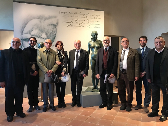 Taormina (Messina) – Inaugurata ieri a Taormina, dove sarà visitabile con ingresso gratuito fino al 15 giugno nelle sale di Palazzo Ciampoli, la grande mostra antologica dedicata allo scultore siciliano Francesco Messina. S’intitola “Arte Sicilia Contemporanea, Francesco Messina. Suggestioni ed echi dall’Antica Naxos”, e riunisce cinquantotto opere dello scultore, originario di Linguaglossa e milanese d’adozione. Si tratta della terza ed ultima tappa di un singolare progetto artistico nato dalla collaborazione fra i Parchi Archeologici di Naxos-Taormina ed Agrigento e lo “Studio Museo Francesco Messina” di Milano, dove un anno fa ha preso il via la narrazione comparata dello scultore siciliano – uno dei massimi protagonisti del Novecento, alla continua ricerca di un’armonia formale classica – le cui opere sono proposte alla lettura dei visitatori affiancate da reperti archeologici del museo di Naxos. Curatori della mostra sono Vera Greco (Direttore del Parco Archeologico di Naxos Taormina), Maria Fratelli (Direttore dello Studio Museo Francesco Messina di Milano) e Diego Cavallaro, che per l’esposizione di Taormina ha progettato concept, allestimenti e contenuti espositivi.