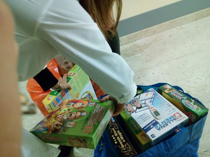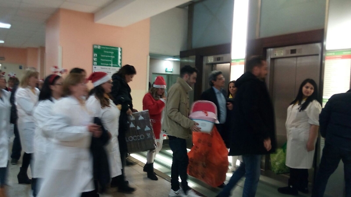CATANIA - Il gesto compiuto nei giorni scorsi da alcuni malfattori non si cancella, ma per lo meno è stato possibile porvi rimedio. Dopo la consegna ieri dei nuovi regali di Natale (donati da Ikea e StMicroelectronics) ai bambini ricoverati nel Reparto di Chirurgia pediatrica del Garibaldi di Nesima, in sostituzione di quelli rubati alcuni giorni fa, oggi è stata la volta del cantante catanese Lorenzo Fragola e del presentatore Salvo La Rosa, che dopo essersi messi in contatto con l'associazione di volontariato RinascEndo (il gruppo che aveva raccolto il dono rubati) si sono presentati in ospedale per far felici i bambini ricoverati durante queste feste natalizie.
