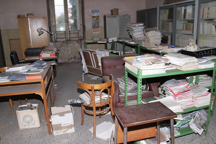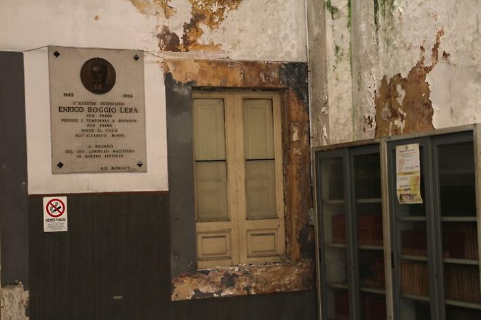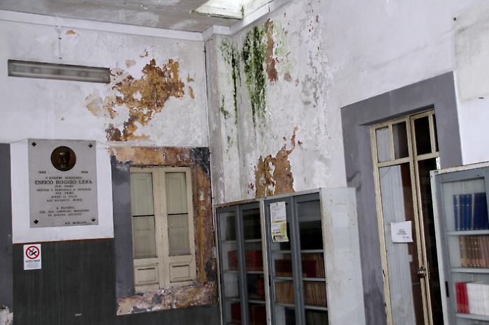 Questi step, tuttavia, tradotti in fatti corrispondono a una condizione di perenne stallo che non arresta il degrado di un patrimonio ormai inaccessibile. Salita la rampa di scale fino al primo piano, infatti, si hanno davanti tre corridoi di cui solo uno è percorribile, a rischio del visitatore. È quello che porta alla presidenza, all’aula intitolata al professore Francesco Segapeli e all’aula-laboratorio “Alfredo Maria Mazzei”, storico preside dell’Eredia. Il bene più prezioso è la biblioteca d’istituto che si trova oltre un atrio più che pericolante, e rischia di essere fagocitata assieme al suo repertorio di inestimabile valore.