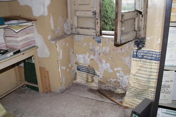 Che l’edificio stia crollando a pezzi, dentro e fuori, è palese. Con i rischi che ne possono derivare per i circa 600 alunni che frequentano le aule dell’adiacente nuovo complesso, in cui dal 2007 si svolgono anche le lezioni e i laboratori dell’indirizzo agrario.