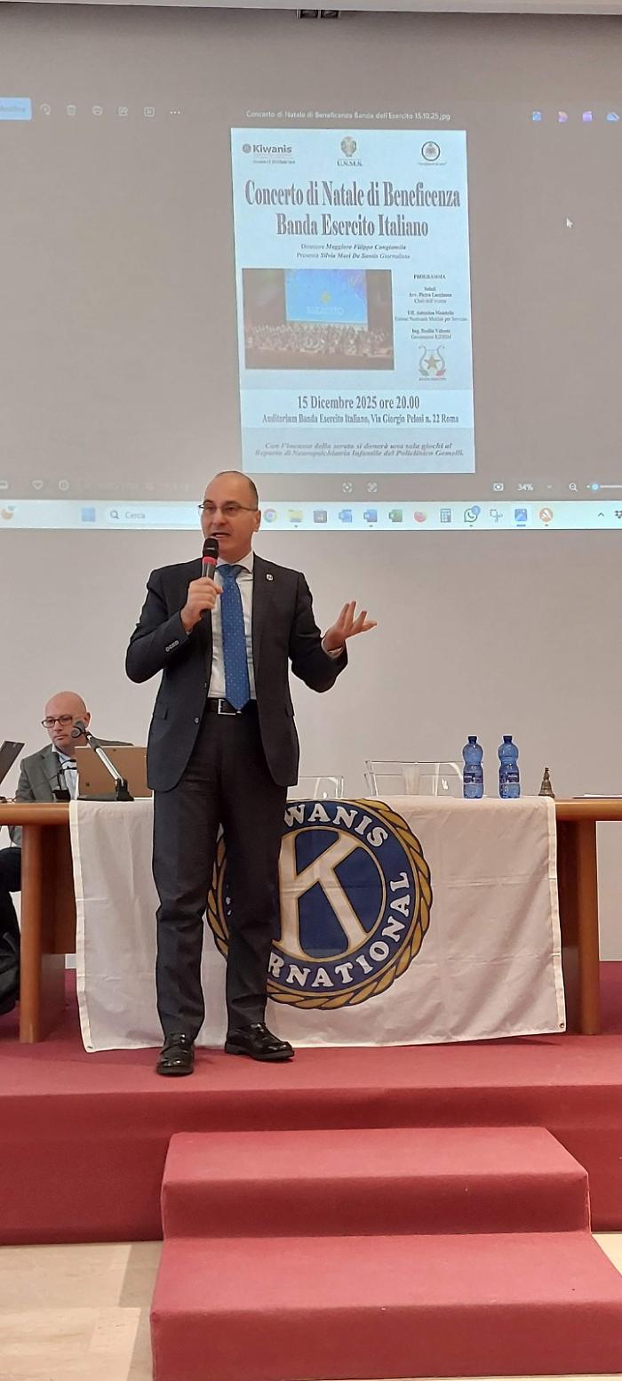 Infine il chair Distrettuale Pietro Luccisano ha parlato del service relativo al “Concerto di Natale della banda dell’esercito” che si terrà il 15 dicembre a Roma per il quale i Club potranno acquistare alcuni biglietti, il cui ricavato servirà per l’acquisto di una Sala giochi che il Kiwanis donerà al Reparto di neuropsichiatria infantile del Policlinico Gemelli.