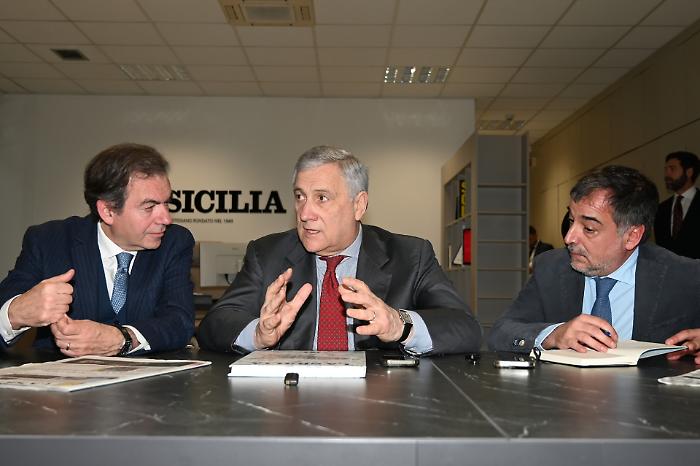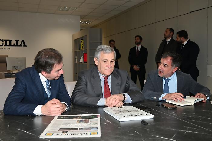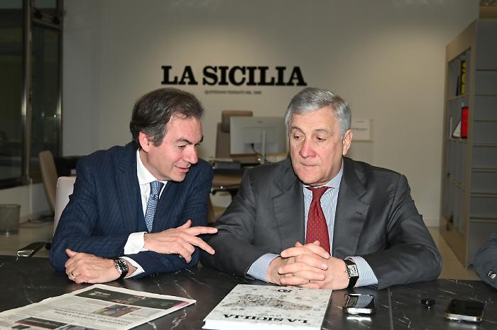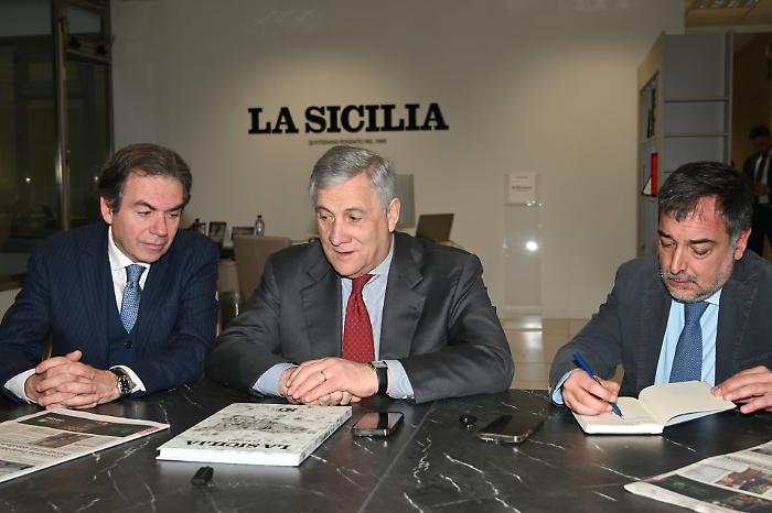 Il vicepremier e ministro degli Esteri Antonio Tajani oggi è stato in visita nella nuova sede del quotidiano La Sicilia di Catania, la dimora storica Villa Scammacca, in viale Vittorio Veneto. Tajani è stato accolto dall'editore Salvatore Palella e dal direttore del quotidiano Antonello Piraneo. Dopo un breve saluto ai giornalisti de La Sicilia, il vicepremier è stato intervistato dallo stesso direttore e dal vicedirettore Mario Barresi. Ha risposto a domande sugli scenari internazionali ma anche sullo stato di salute in Sicilia di Forza Italia, il partito di cui è segretario nazionale.