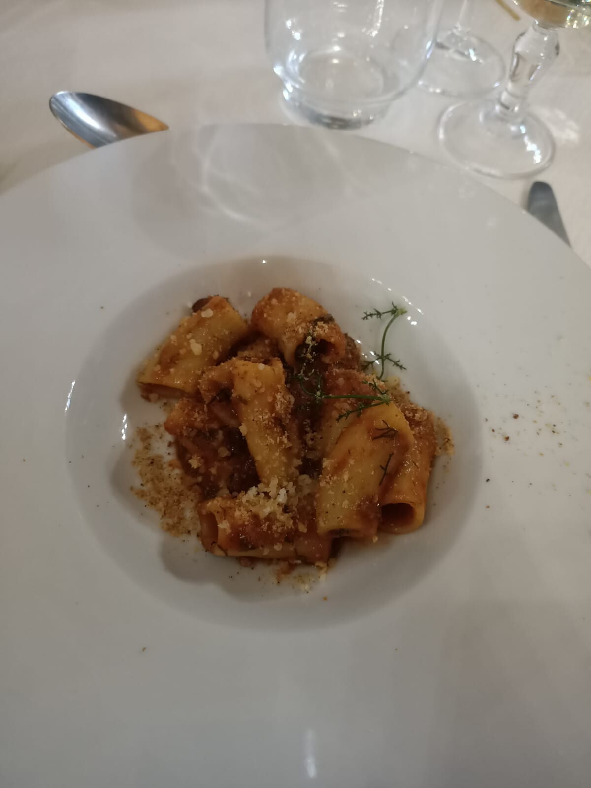 Mezzi paccheri Piazza al ragù di buzzonaglia profumato al limone